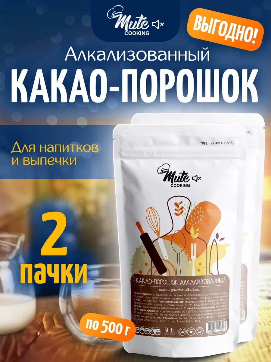 MUTE Какао порошок алкализованный темный, 500 г. х 2 шт