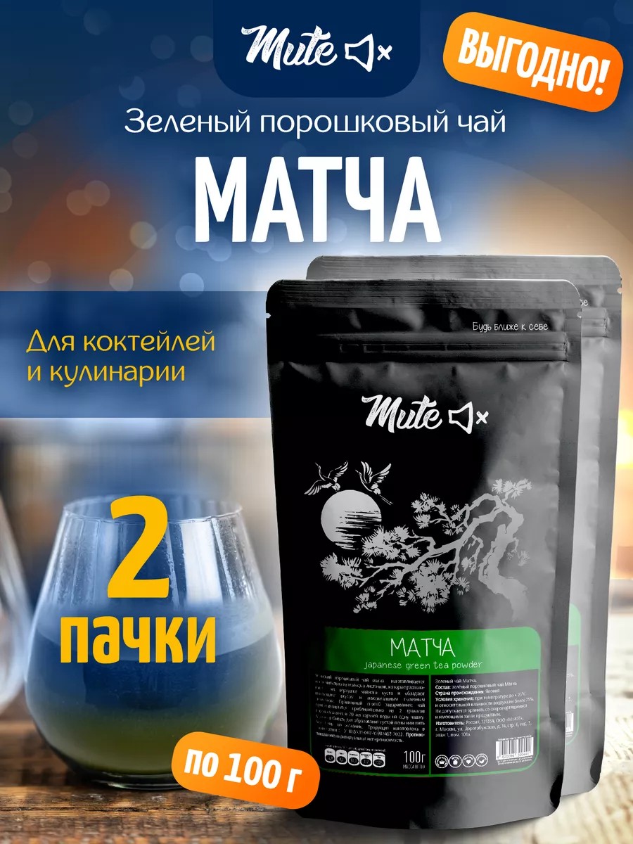 MUTE Матча зеленый чай для напитков и выпечки, 100 г. х 2 шт