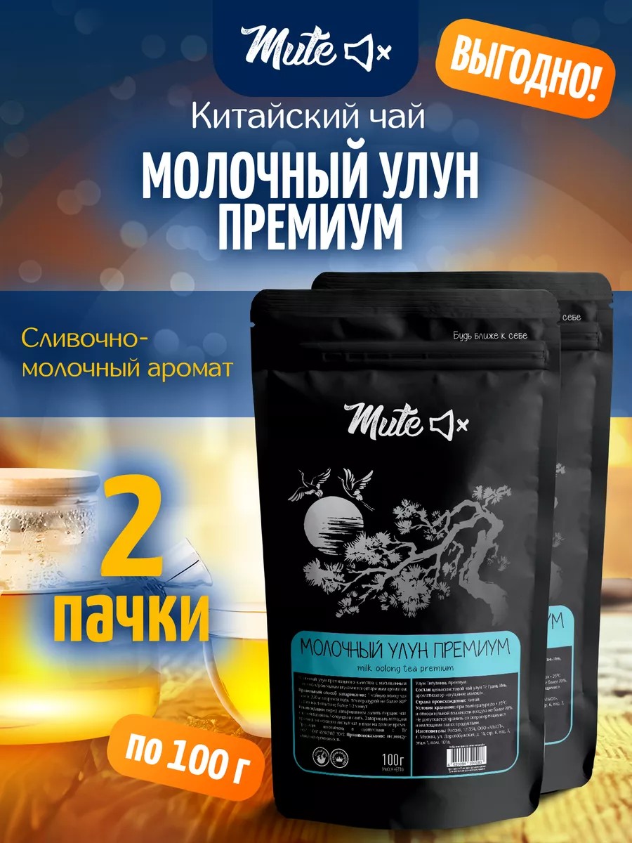 MUTE Набор чая молочный улун зеленый премиум, 100 г. х 2 шт