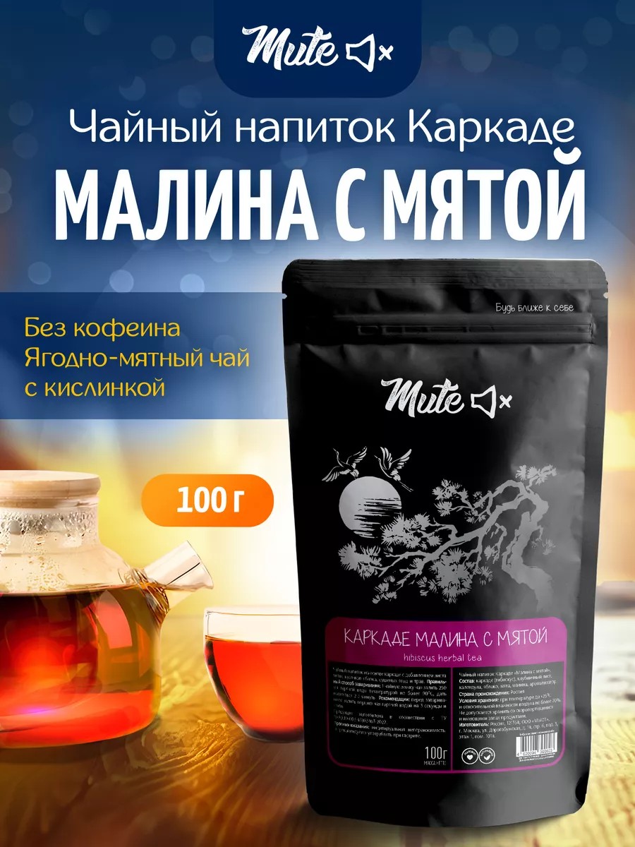 Mute Чай ягодный каркаде малина с мятой, 100 г.