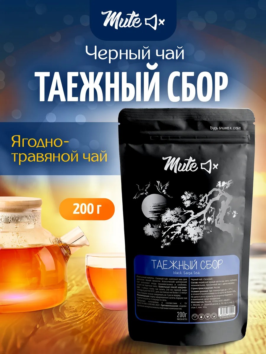 Mute Чай черный таежный сбор с ягодами, 200 г.