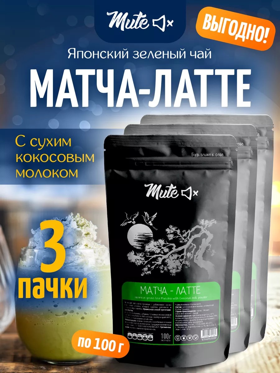 MUTE Чай матча-латте без сахара на кокосовом молоке, 100 г х 3 шт