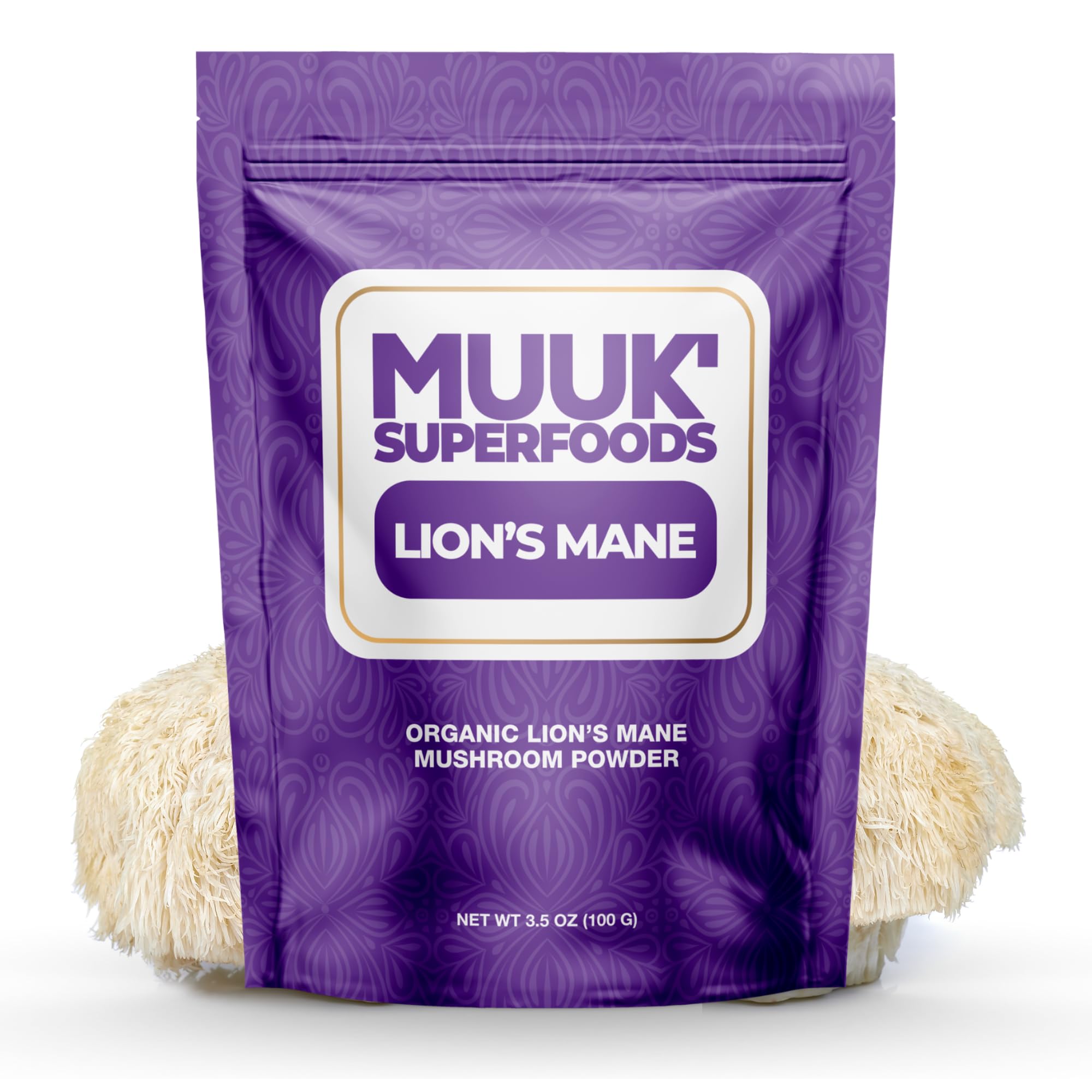 MUUK' SUPERFOODS | Pure Organic Lion's Mane Mushroom Powder | Brain-Boosting USA-Made | 3.5 oz (100g) 60 Servings