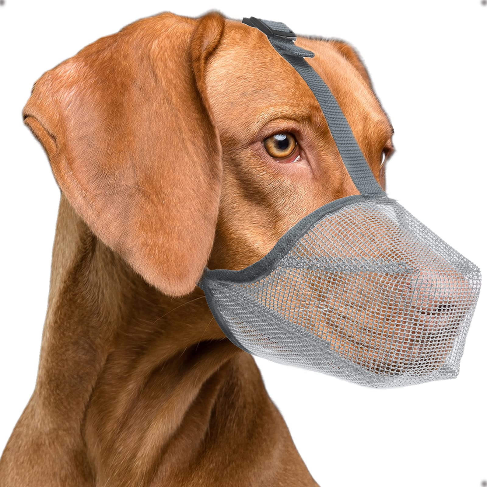 Note: Please read the that shows you how to put on your dog a muzzle, since dogs can be anxious at the beginning and could try to bite when you put on.measurement: measure the scope of the mouth and neck of the dog.We have different sizes for small, medium and large dogs.Please check the size table and choose the right size.If you are undecided between two sizes, the larger size is more suitable.Please check before buying.Quality and security: practical and reliable dog muzzle made of environmentally friendly PVC material, odorless, comfortable and durable design, soft edge fabric that is not harmful to the skin.The ergonomically designed safety closure prevents the muzzle from removing the dog paws.Round protection: The 360 design offers all-round protection around the dog's mouth.The triangular fixation ensures a firm hold and prevents the falling.Effectively prevents biting, licking and chewing.Apishable adjustable: The muzzle is made of durable, breathable nylon fabric, which makes your dog breathe almost normally.The muzzle has an adjustable strap that enables them to adapt the muzzle so that it is perfectly sitting.HINWEIS: Bitte lesen Sie die , die Ihnen zeigt, wie Sie Ihrem Hund einen Maulkorb anlegen können, da Hunde am Anfang ängstlich sein können und versuchen könnten zu beißen beim anlegen. MESSUNG: Messen Sie den Umfang des Mauls und des Halses des Hundes. Wir haben verschiedene Größen für kleine, mittlere und große Hunde. Bitte checken Sie die Größentabelle und wählen Sie die passende Größe. Wenn Sie zwischen zwei Größen unschlüssig sind, ist die größer Größe besser geeignet. Bitte vor dem Kauf überprüfen. QUALITÄT UND SICHERHEIT: Praktischer und zuverlässiger Hundemaulkorb aus umweltfreundlichem PVC-Material, geruchsneutral, komfortables und langlebiges Design, weicher Kantenstoff der nicht schädlich für die Haut ist. Der ergonomisch gestaltete Sicherheitsverschluss verhindert das Entfernen des Maulkorbs durch die Hundepfoten. RUNDUMSCHUTZ: Das 360 -Design bietet einen Rundumschutz um das Maul des Hundes. Die dreieckige Fixierung sorgt für einen festen Halt und verhindert das Abfallen. Verhindert wirksam das Beißen, Lecken und Kauen. ATMUNGSFÄHIG VERSTELLBAR: Der Maulkorb ist aus strapazierfähigem, atmungsaktivem Nylongewebe gefertigt, das Ihren Hund fast normal atmen lässt. Der Maulkorb hat einen verstellbaren Riemen, der es Ihnen ermöglicht, den Maulkorb so anzupassen, dass er perfekt sitzt.Maulkorb für Hunde mit abgerundetem Mesh, atmungsaktiver Maulkorb für kleine, mittelgroße und große Hunde, verhindert das Fressen, Beißen und Kauen(XL, Grau) XL Grau