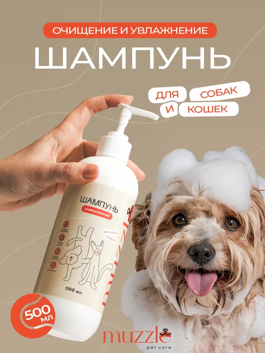 Универсальный гипоаллергенный шампунь для собак и кошек Muzzle (Маззл) создан для регулярного ухода за шерстью и защиты лап домашних животных от неблагоприятных воздействий окружающей среды. Мягкая формула шампуня эффективно очищает шерсть и дарит приятный аромат. Комплекс витаминов и экстракт шалфея ухаживает за шерстью, делает ее мягкой и гладкой. Подходит для собак и кошек старше 2 месяцев с любым типом шерсти. Способ применения: разведите универсальный шампунь в емкости с водой в пропорции 1:5. Вспеньте жидкость губкой, нанесите пену на влажную шерсть питомца. Аккуратными движениями очистите шерсть и тщательно смойте остатки шампуня. Для легкого расчесывания рекомендуем также использовать бальзам-кондиционер Muzzle.