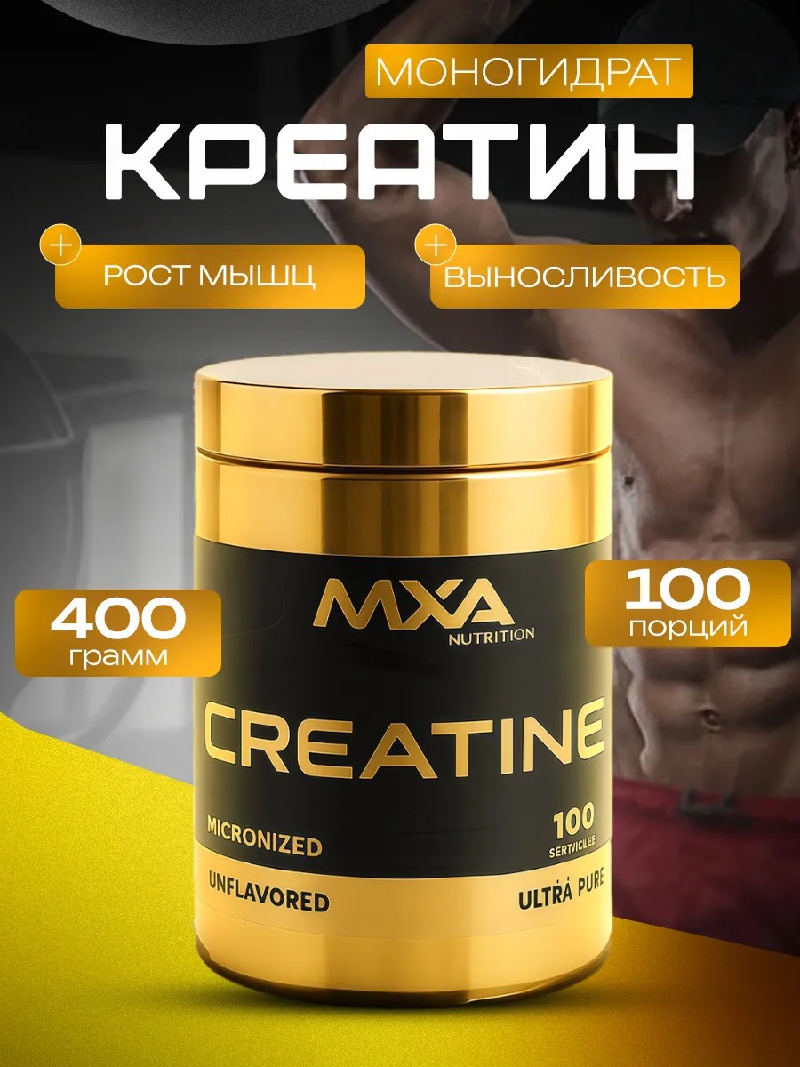 Креатин моногидрат микронизированный порошок MXA NUTRITION 400 гр, 100 порций, спортивное питание для набора мышечной массы