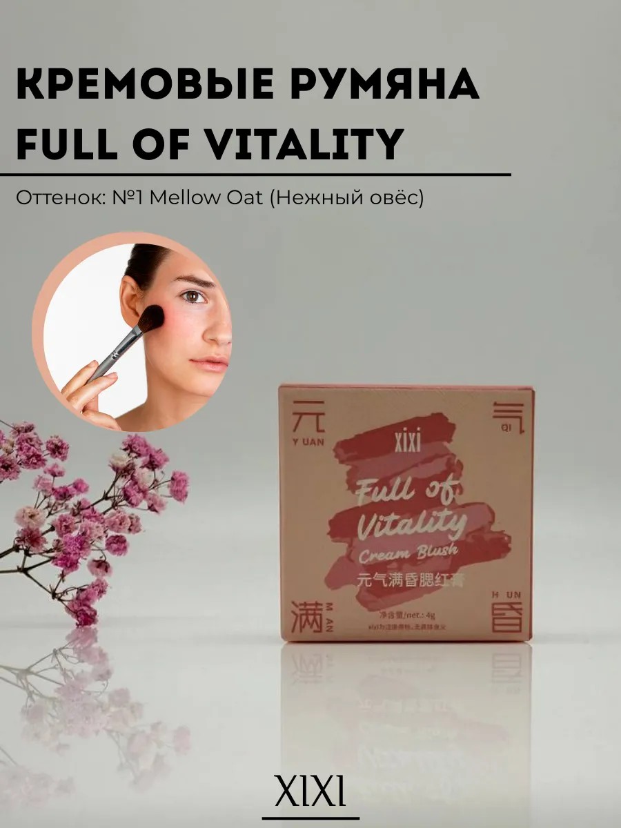 Сделайте свой макияж более живым и сияющим с кремовыми румянами XIXI Full of Vitality Cream Blush в нежном оттенке №1 Mellow Oat. Этот продукт создан для придания коже здорового, естественного румянца и свежего вида. Благодаря своей лёгкой, кремовой текстуре, румяна легко наносятся и растушёвываются, создавая безупречное покрытие без эффекта "маски".