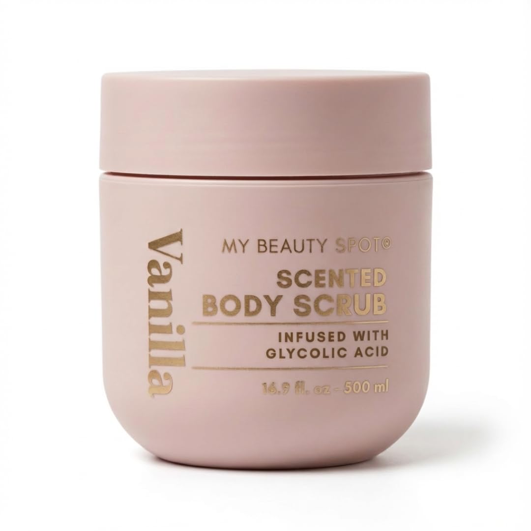 Reveal smoother, brighter-looking skin with My Beauty Spot Vanilla Scented Body Scrub, a refined exfoliating body scrub for women designed to gently polish away dull, rough skin while improving overall skin texture. This effective body exfoliator helps remove buildup and dead skin, leaving your body feeling soft, smooth, and refreshed after every use. Infused with Glycolic Acid, this skin exfoliator for body helps promote gentle chemical exfoliation to support smoother-looking, more even-toned skin over time. As a powerful dead skin remover for body, it works to loosen and lift dead skin cells while enhancing the results of physical exfoliation for a polished, radiant finish. The warm, comforting vanilla scent adds a cozy, indulgent touch to your shower routine, creating a spa-like experience at home. Ideal for regular use, this scrub delivers effective exfoliation while leaving skin feeling balanced and renewed.SKIN EXFOLIATOR FOR BODY – Ideal for arms, legs, elbows, knees, and dry areas helps prep skin for better moisturizer absorption. WARM VANILLA SCENT – Soft, comforting fragrance creates a relaxing, spa-like shower experience. DEAD SKIN REMOVER FOR BODY – Effectively lifts and removes dead skin buildup for a polished, refreshed feel. INFUSED WITH GLYCOLIC ACID – Helps gently exfoliate and refine skin texture while supporting brighter, more even-looking skin. EXFOLIATING BODY SCRUB FOR WOMEN – Buffs away rough, dull skin to reveal smoother, softer, more radiant-looking results.