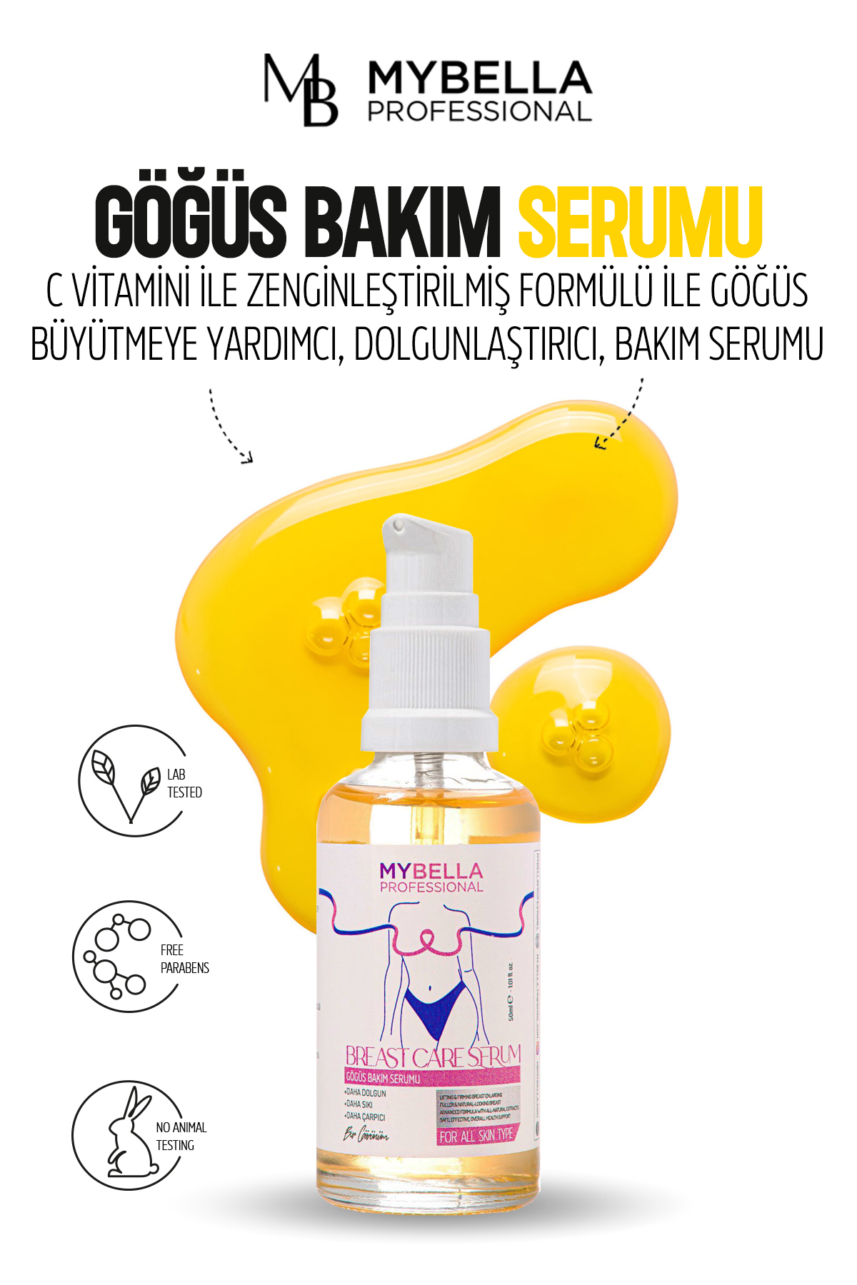 MY Bella Cosmetics Breast Enlargement Helper Breast Care Serum. 50 ml Enriched with Vitamin C Enlarge Me Enlarge C