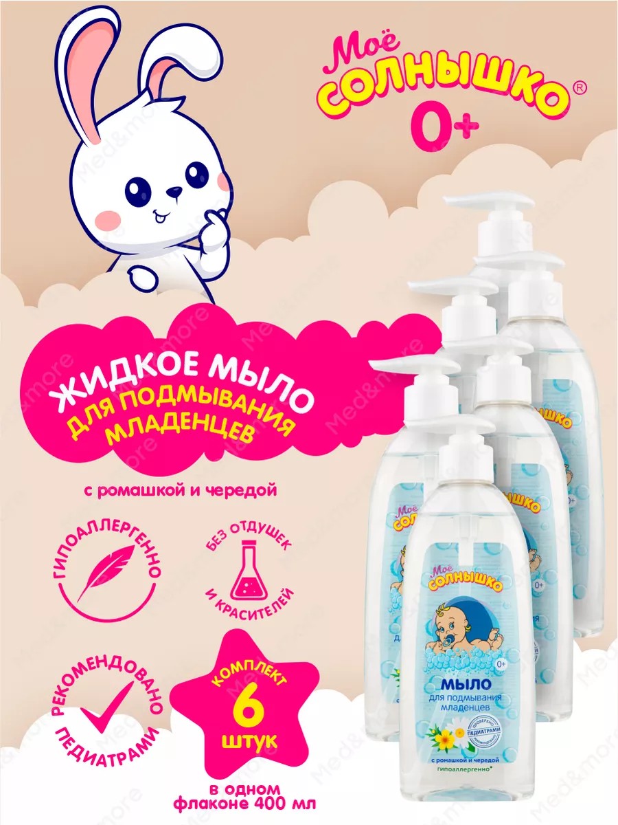Мыло жидкое для подмывания младенцев Моё Солнышко с ромашкой и чередой 400 мл, 6 шт – это бережное средство, специально разработанное для ухода за чувствительной кожей новорожденных и малышей. Благодаря удобному дозатору его легко использовать при каждой смене подгузника и перед сном, обеспечивая нежное очищение без лишнейщвыпряги и дискомфорта. Мягкий состав обеспечивает деликатный уход, не сушит кожу и не раздражает слизистые оболочки, что особенно важно для малышей с чувствительной и незрелой кожей.