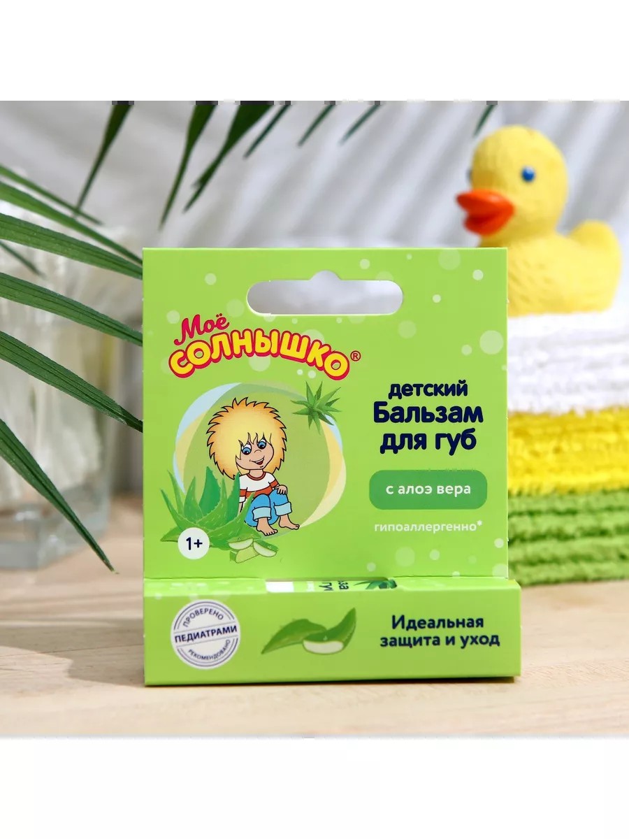 КомплектацияБальзам для губ детский Моё СОЛНЫШКО с экстрактом алоэ, 2,8 г-1шт.
