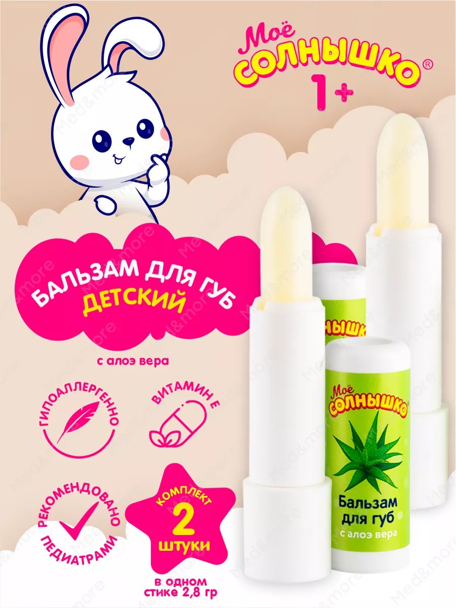Моё солнышко Бальзам для губ детский с Алоэ гигиеническая помада 2 штуки