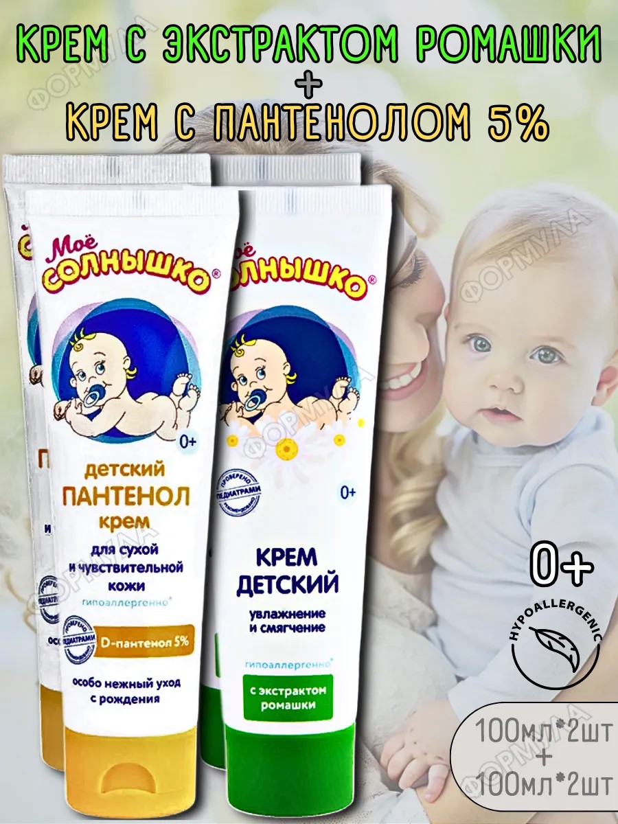МОЕ СОЛНЫШКО Детский крем Ромашка 100мл*2шт + Пантенол 100мл*2шт