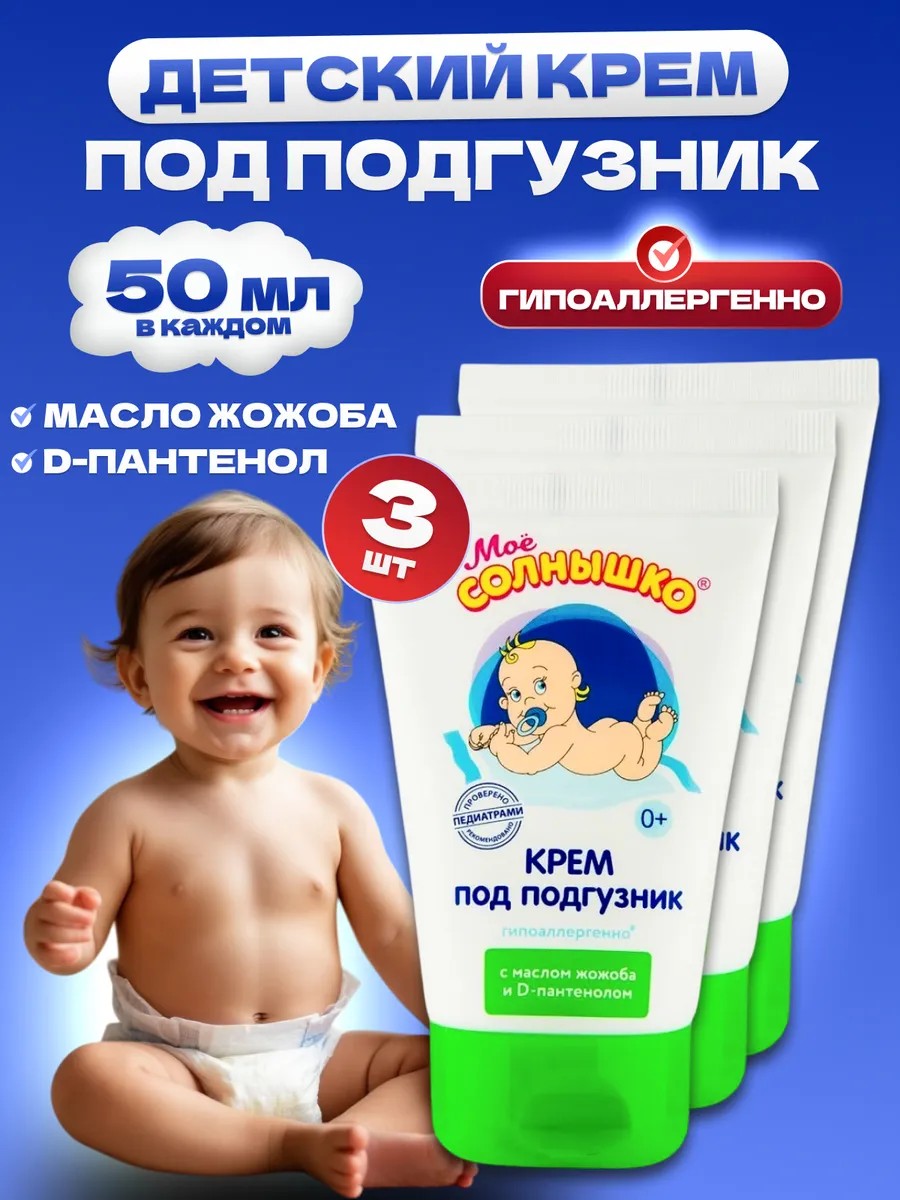 Мое солнышко Детский крем под подгузник с Пантенолом 3шт по 50мл
