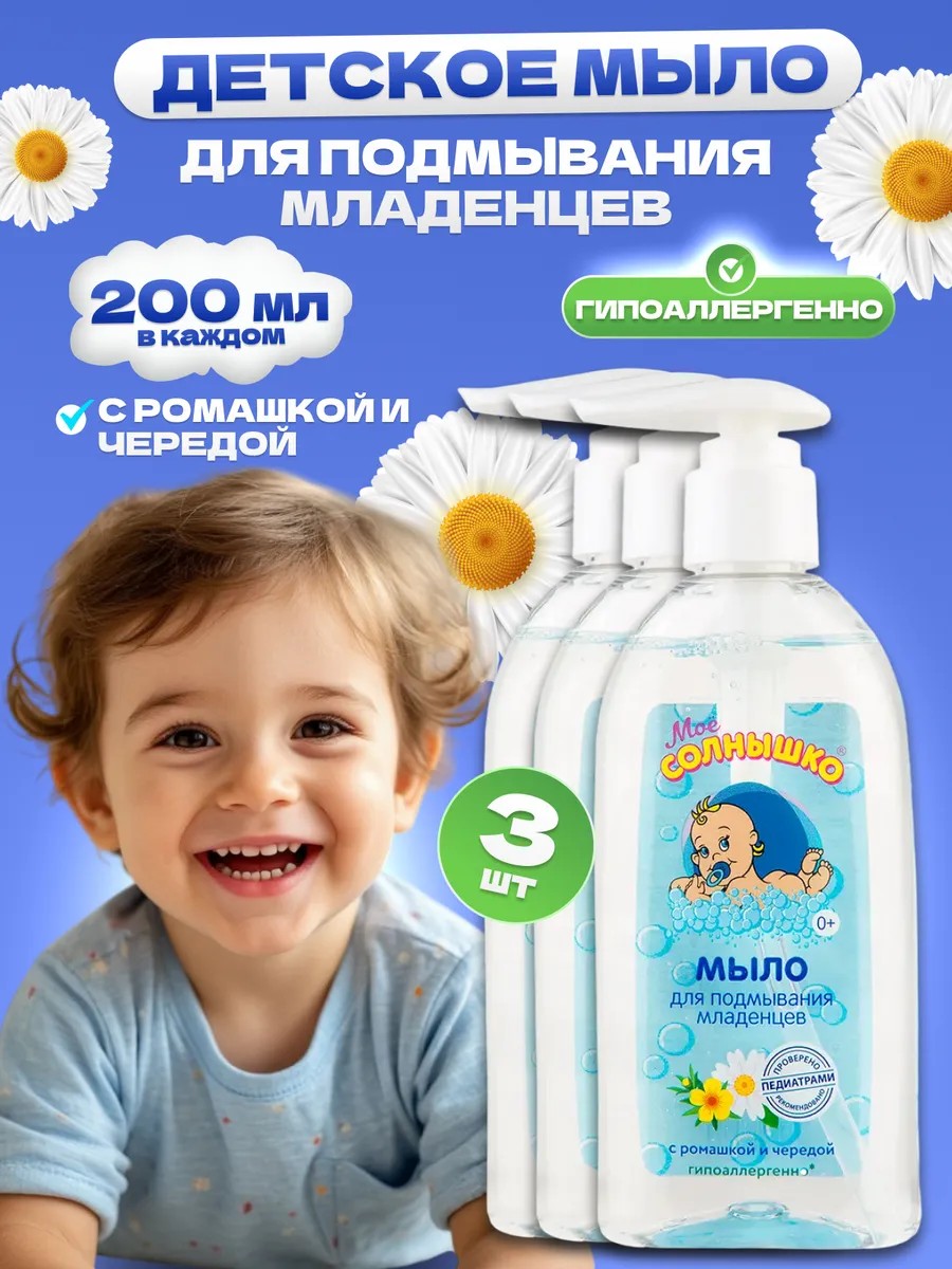 Моё солнышко Детское жидкое мыло для подмывания младенцев 3 шт по 200мл