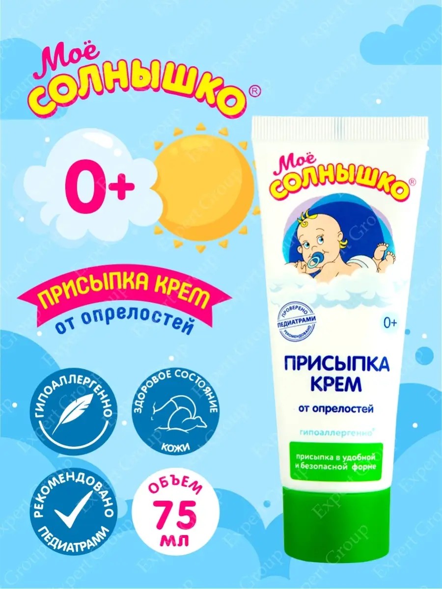 | Комплектация | Присыпка-крем от опрелостей Моё Солнышко 75 мл.; Детская присыпка; крем под подгузники, детский крем |