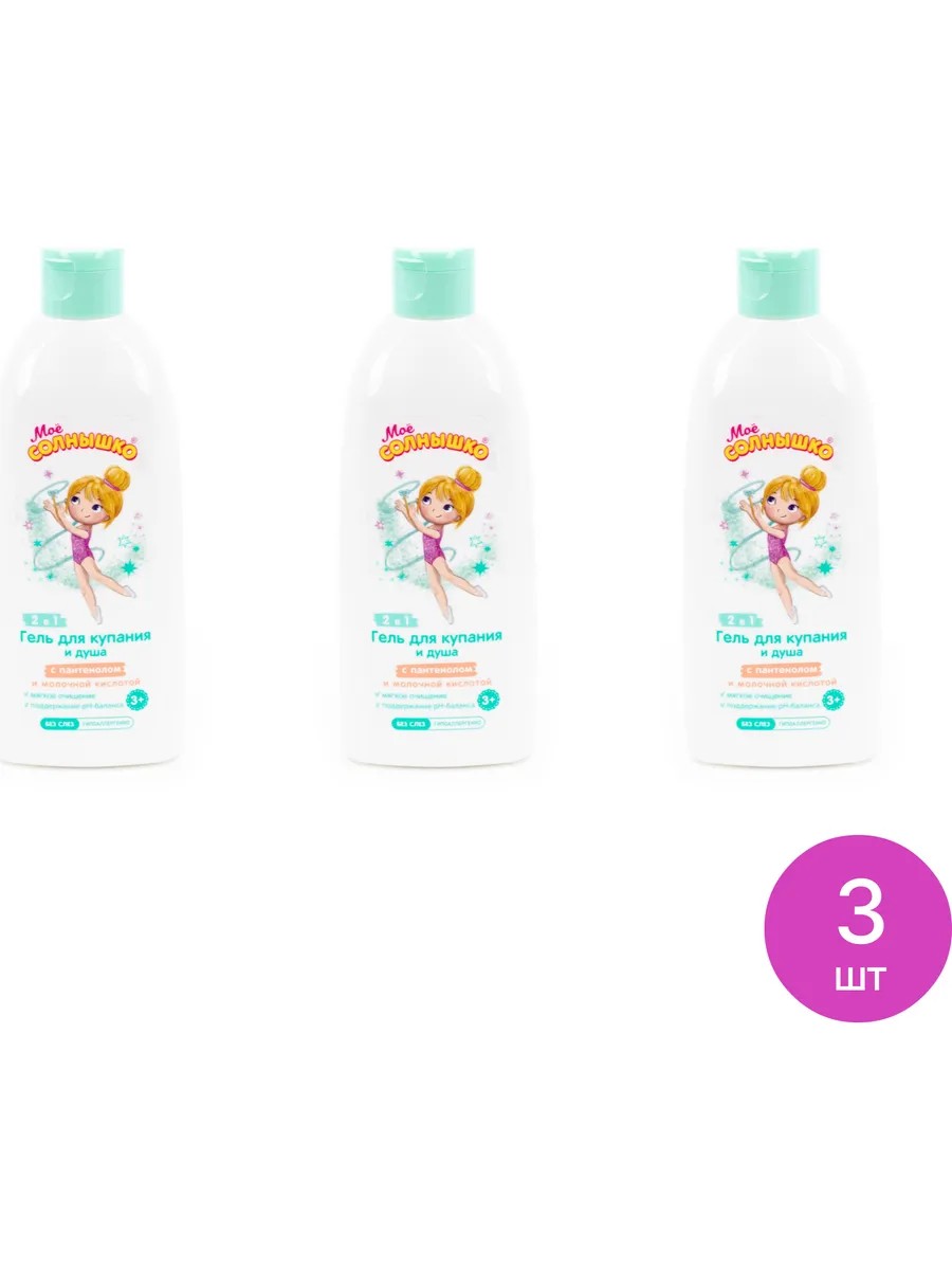 Моё Солнышко Гель для купания и душа 2 в 1 детский, с пантенолом и молочной кислотой, 400мл / средство для ухода за детской кожей.