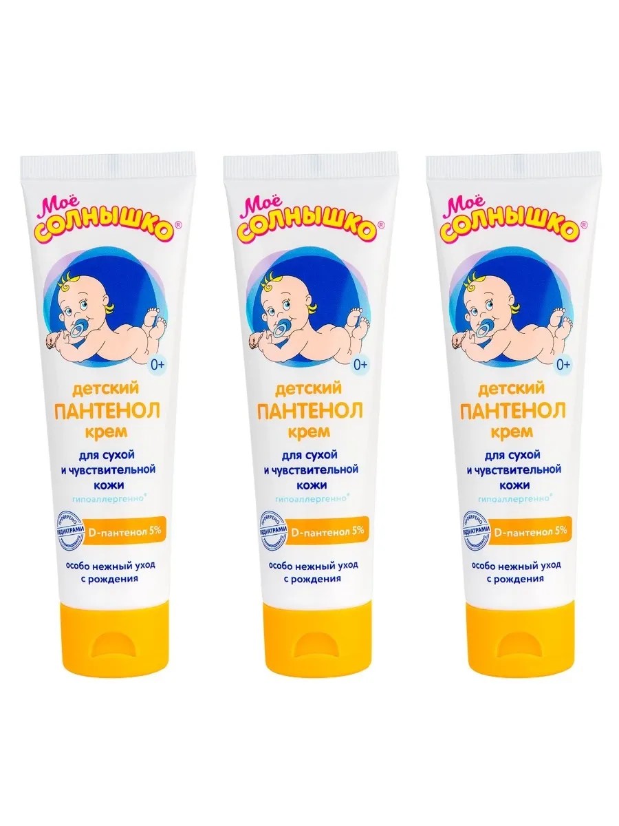 Моё солнышко Крем детский Пантенол, 100 мл, 3 шт. Идеальный уход за очень чувствительной, сухой и раздраженной кожей с самого рождения. Подходит для новорожденных. Разработан специально для ухода за сухой и чувствительной детской кожей. Содержит 5% D-пантенола, интенсивно увлажняет и восстанавливает кожу малыша, предупреждает возникновение покраснений. Крем создает нежную защитную пленку, предотвращает потерю влаги и поддерживает защитные функции кожи.