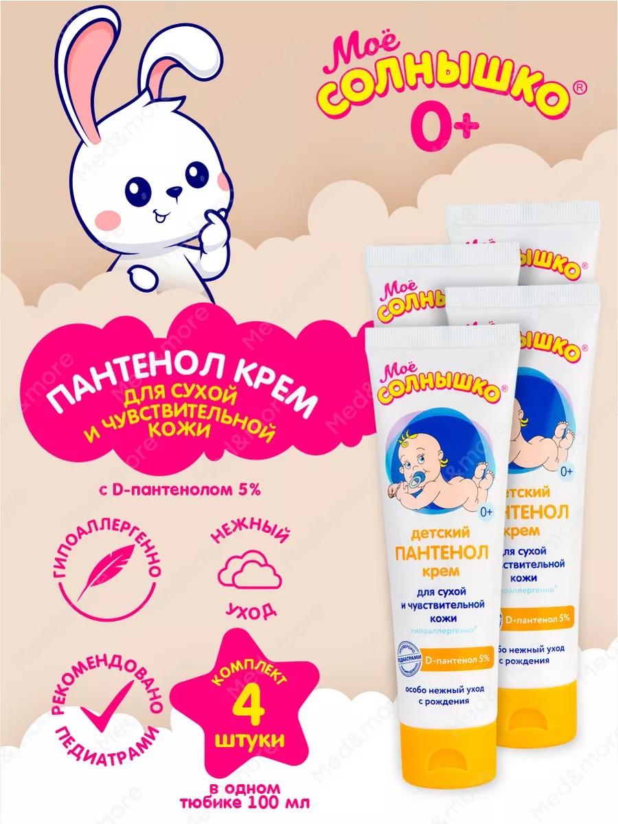 | Комплектация | Крем детский Пантенол для ухода за сухой и чувствительной кожей Моё Солнышко 100 мл. х 4 шт |