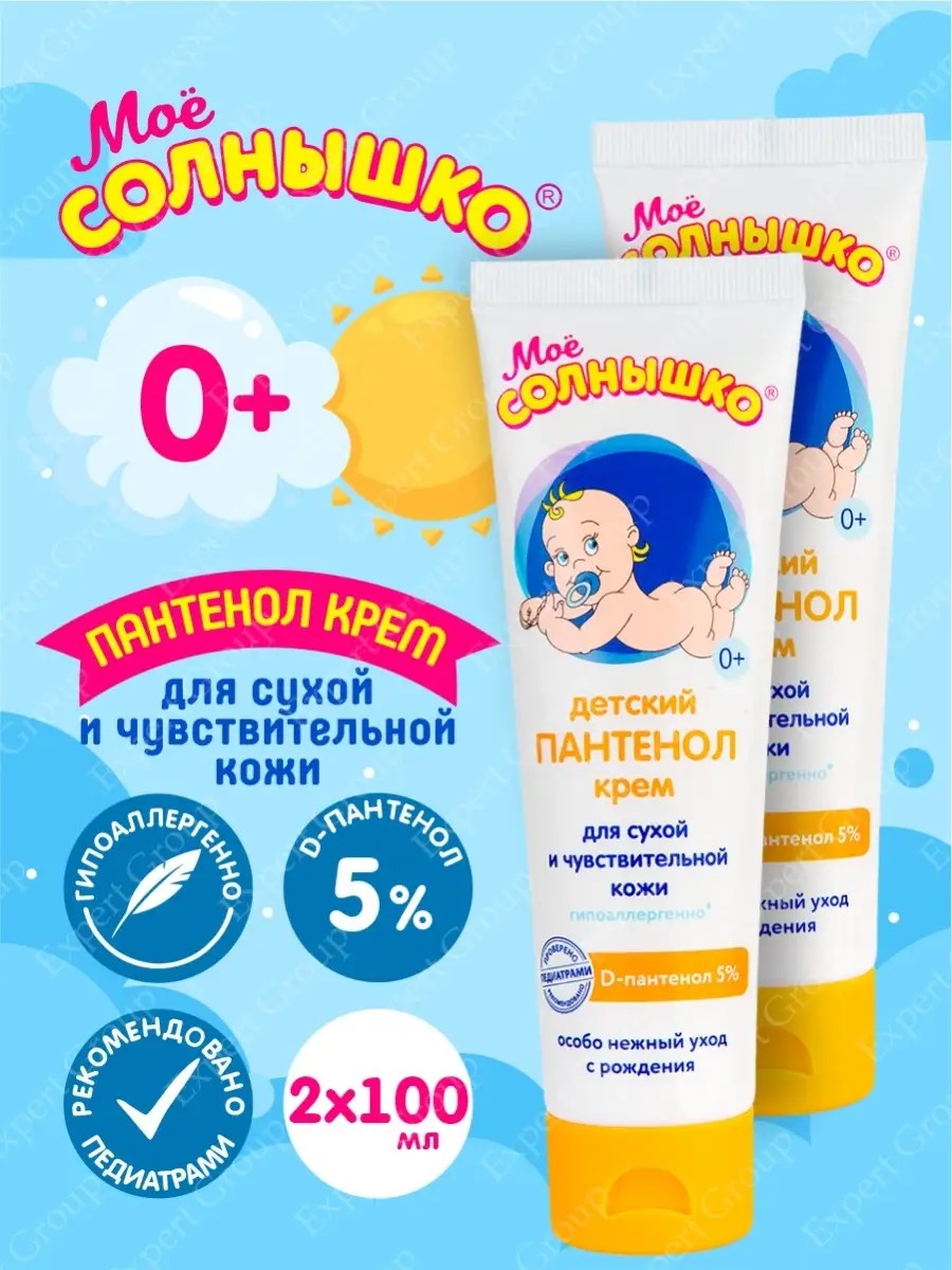 Крем детский Пантенол для ухода за сухой и чувствительной кожей Гипоаллергенно Моё Солнышко 100 мл. Разработан специально для ухода за сухой и чувствительной детской кожей. Содержит 5% D-пантенола, интенсивно увлажняет и восстанавливает кожу малыша, предупреждает возникновение покраснений. Крем создает нежную защитную пленку, предотвращает потерю влаги и поддерживает защитные функции кожи. Подходит для малышей с первых дней жизни. Гипоаллергенно. Формула создана для сведения к минимуму риска аллергической реакции в случае индивидуальной непереносимости ингредиентов состава.
