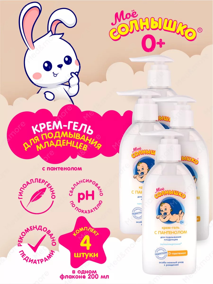 Крем-гель для подмывания младенцев с пантенолом Моё Солнышко 200 мл, 4 шт — это незаменимое средство для бережного ухода за чувствительной кожей вашего малыша. Оснащённый удобным дозатором, он позволяет легко и гигиенично нанести небольшое количество средства при каждой смене подгузника и перед сном, обеспечивая кожу малыша чистой и защищённой в течение всего дня и ночи. Мягкая формула, обогащённая D-пантенолом, мягко очищает кожу, не вызывая её высыхания и раздражения слизистых оболочек. Благодаря сбалансированному уровню pH, средство легко адаптируется к естественной кислотности кожи ребенка, минимизируя риск появления раздражений и аллергических реакций.