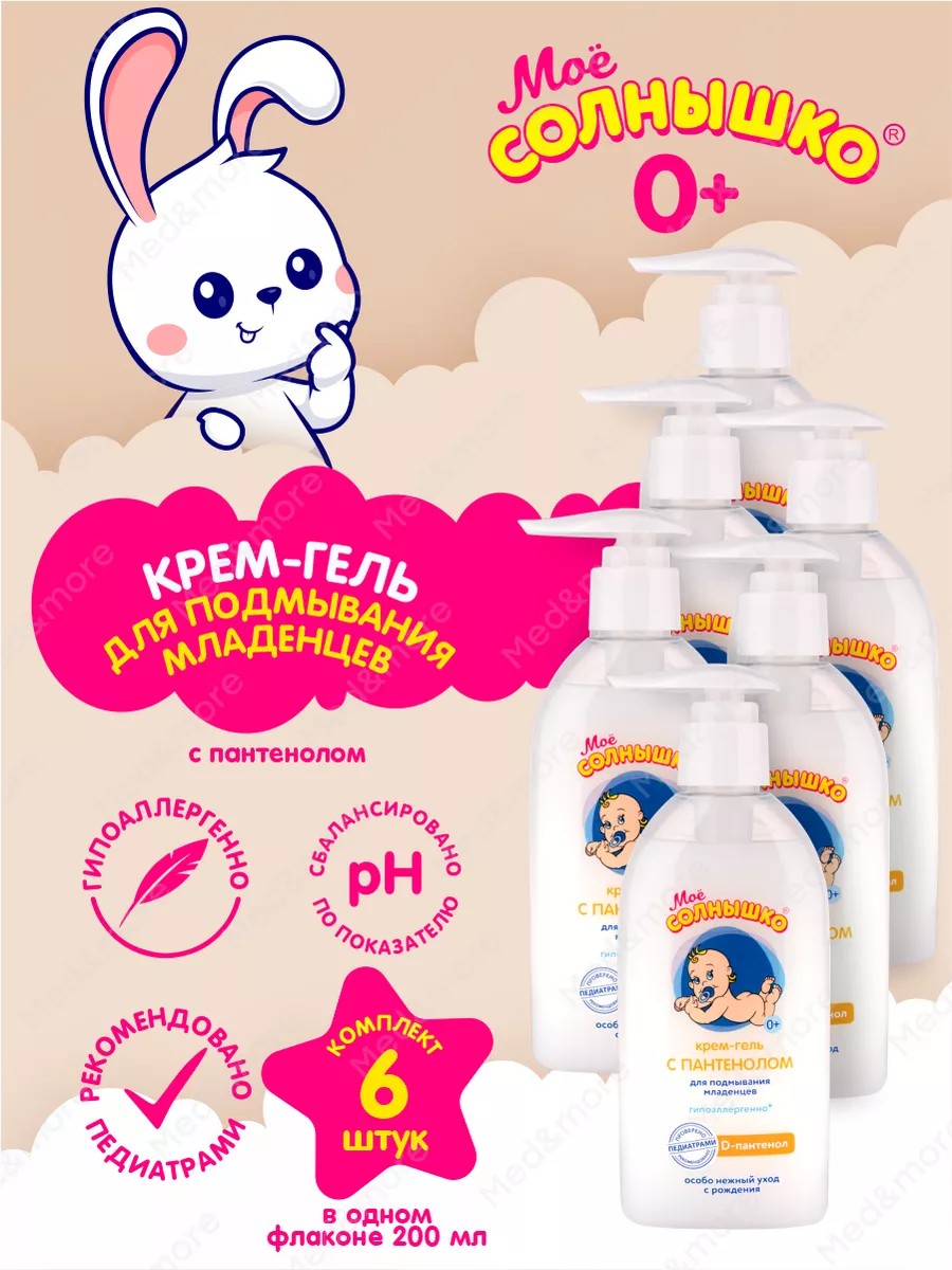 | Комплектация | Крем-гель для подмывания младенцев с пантенолом Моё Солнышко 200 мл. х 6 шт. |
