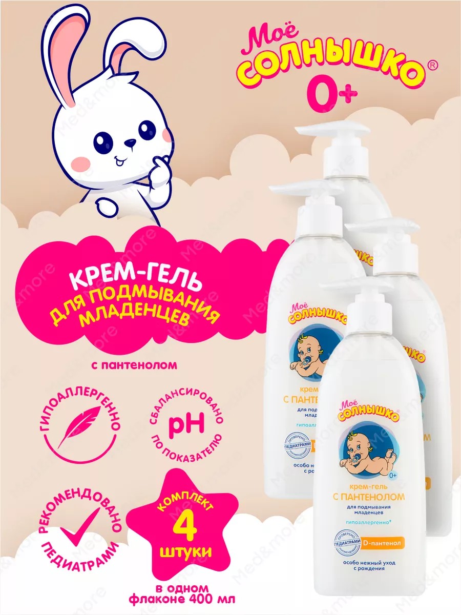 | Комплектация | Крем-гель для подмывания младенцев с пантенолом Моё Солнышко 400 мл. х 4 шт. |