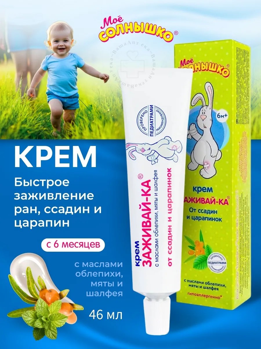 Крем "Заживайка" разработан с учетом всех потребностей детской кожи. Его ранозаживляющий и успокаивающий эффект способствует регенерации и восстановлению поврежденных участков кожи. Крем эффективно справляется с последствиями ушибов и ссадин, обеспечивая смягчающий и успокаивающий уход. Формула крема "Моё солнышко" включает в себя натуральные компоненты, которые способствуют быстрому заживлению и восстановлению кожи.