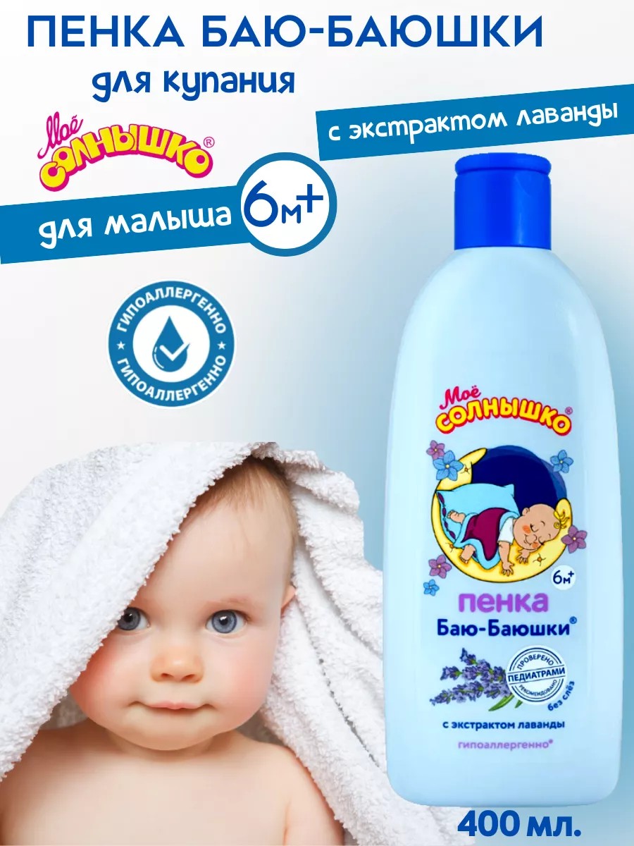 Пенка для купания Баю Баюшки для малышей с 6 месяцев 400мл. Мягко очищает кожу ребенка и создает нежную пену во время купания. Особый вечерний ритуал и волшебный аромат лаванды создают приятную атмосферу и настраивают малыша на спокойный и крепкий сон. Пенка мягко и бережно ухаживает за кожей малыша. Подходит для ежедневного использования.