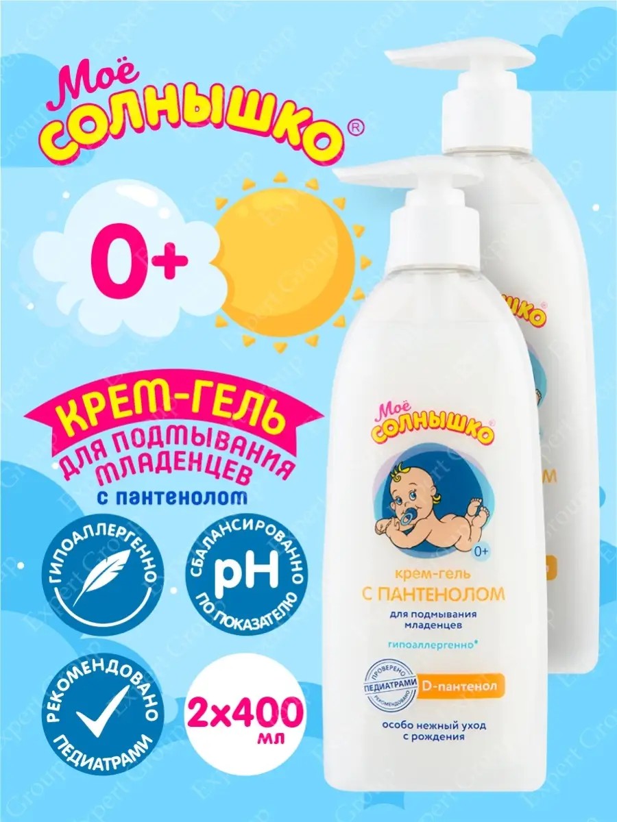 Крем-гель для подмывания младенцев с пантенолом Моё Солнышко 400 мл. К покупке доступны на выбор 1 шт. или 2 шт. Бережно очищает кожу младенца при каждой смене подгузника и перед сном. Мягкая формула с D-пантенолом не сушит кожу и не раздражает слизистые. Регулярное использование способствует поддержанию кожи малыша в зоне подгузника в здоровом состоянии. Подходит для чувствительной кожи. Подходит для малышей с первых дней жизни. Сбалансированно по показателю рН. Гипоаллергенно. Формула создана для сведения к минимуму риска аллергической реакции в случае индивидуальной непереносимости ингредиентов состава.