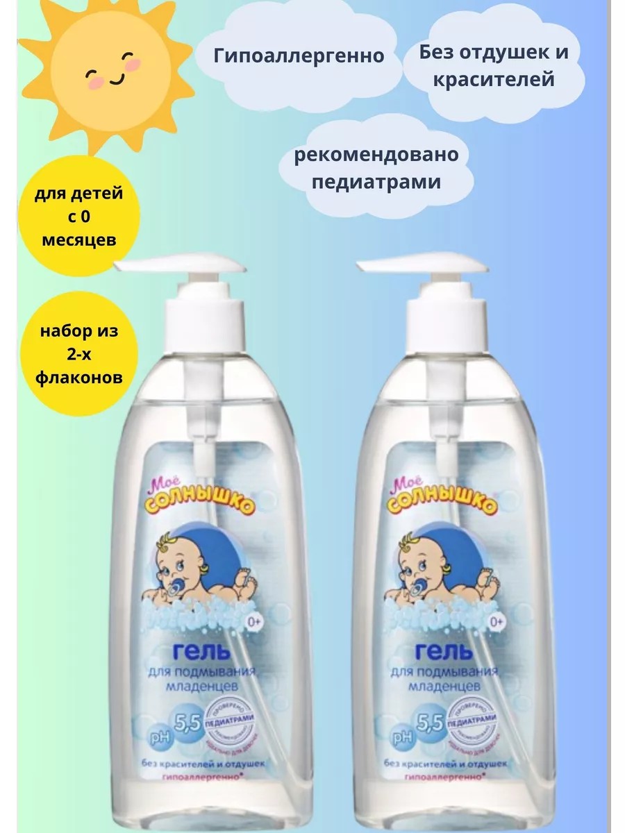 МОЕ СОЛНЫШКО ГЕЛЬ ДЛЯ ПОДМЫВАНИЯ МЛАДЕНЦЕВ - бережно очищает кожу младенца при каждой смене подгузника и перед сном.