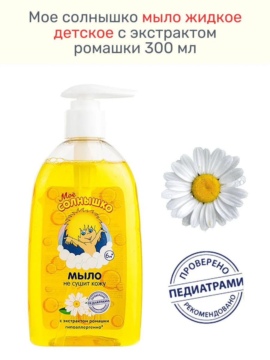 МОЕ СОЛНЫШКО МЫЛО ЖИДКОЕ С ЭКСТРАКТОМ РОМАШКИ - бережно очищает кожу ребенка, оставляя ощущение чистоты и мягкости.
