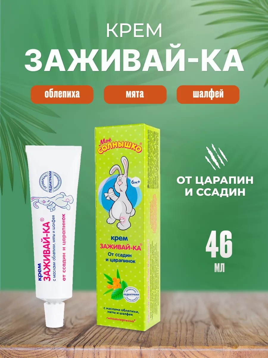 Крем детский "Заживай-ка" создает воздухопроницаемую защитную пленку,которая «запечатывает» участки с заживающими ссадинками и царапинами, предохраняет их от загрязнения, нормализует природный защитный барьер и облегчает неприятные ощущения. Крем содержит комплекс с маслами облепихи, шалфея мускатного, аллантоидном, витаминами А, Е и маслом мяты.• Подходит для детей с 6 месяцев.• Гипоаллергенно*• Клинически проверено и рекомендовано педиатрами. Температура храненияот 5℃ до 25℃Составвода, цетеариловый спирт, пропиленгликоль, глицерил стеарат, глицерин.смола лиственичная, циклометикон, вощина, масло касторовое, триизононаноин, стеарил диметикон, сополимер винилпирролидон/ винилацетат, каприлик/каприк триглицериды, цeтеарет-20, ланолин, ПЭГ- 40 гидрогенизат касторового масла, экстракт бадана, экстракт шалфея, аллантоин, масло облепиховое, масло мятное, масло шалфея мускатного, тетрадибутилпентаэритритил гидроксигидроциннамат, метилпарабен, пропилпарабен, метилизотиазолинон. Крем «Заживай-ка» от царапин и ссадин – это специальный детский крем, ускоряющий заживление поверхностных царапин, ранок и ссадинВ состав крема «Заживай-ка» входит богатый комплекс активных натуральных компонентов.• Масло облепихи, шалфея мускатного, аллантоин и витамины А, Е и С способствуют быстрой регенерации и восстановлению кожи.• Масло шалфея и экстракт бадана обладают кровоостанавливающим и противовоспалительным действием.• Масло мяты облегчает неприятные болевые ощущения и зуд.•Лиственничная смола и вощина «запечатывают» ранку и предохраняют ее от загрязнений.Крем «Заживай-ка» эффективно и безопасно ускоряет регенерацию и восстановление кожи, обладает противовоспалительным и ранозаживляющим действием, облегчает неприятные болевые ощущения.