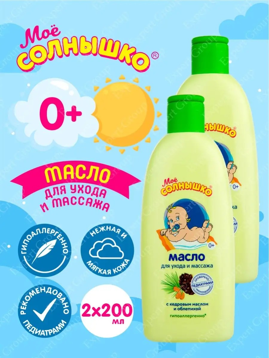 Масло для ухода и массажа гипоаллергенно для детей с рождения кедр-облепиха Моё Солнышко 200 мл. Специальное масло для общеукрепляющего массажа и ухода за детской кожей. Хорошо скользит по коже без эффекта липкости. Содержит комплекс масел облепихи, кедрового ореха и кедрового стланика. Смягчает детскую кожу, делая её нежной и шелковистой. Подходит для малышей с первых дней жизни. Гипоаллергенно. Формула создана для сведения к минимуму риска аллергической реакции в случае индивидуальной непереносимости ингредиентов состава.