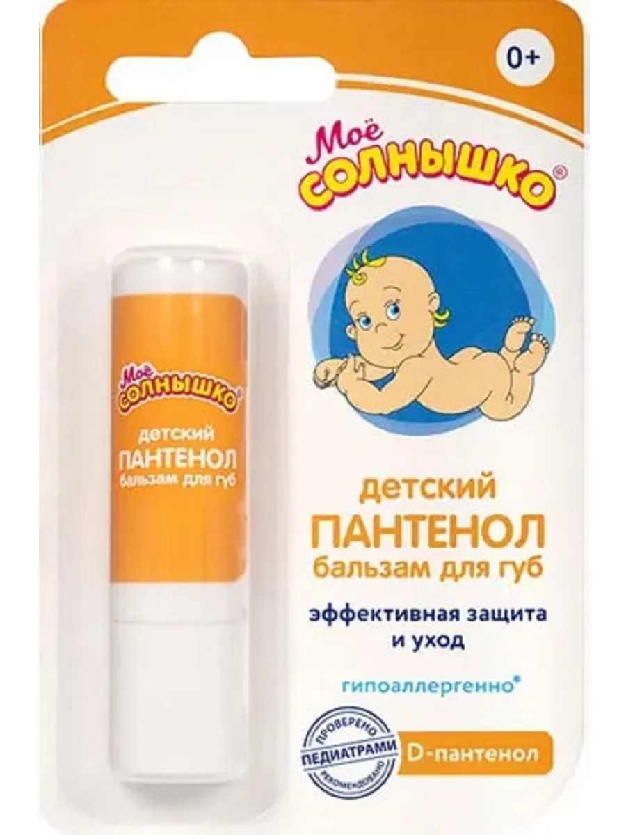 Мое солнышко бальзам для губ детский пантенол создан специально для ухода за кожей губ для детей с 3 месяцев. Его особая формула на основе пантенола и других полезных компонентов увлажняет и питает нежную кожу губ, защищая ее от сухости и раздражения. Благодаря витамину Е, экстракту ромашки, маслу ши, бальзам интенсивно ухаживает и смягчает кожу, предохраняет ее от пересушивания, препятствует потере влаги. Защищает кожу даже во время купания. Гипоаллергенно. Клинически проверено и рекомендовано педиатрами.