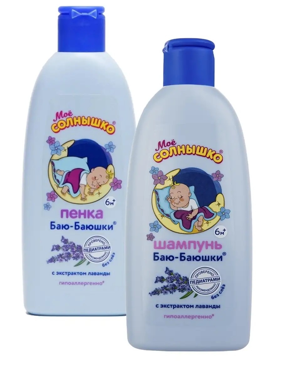 Пена для ванны Моё солнышко Баю-баюшки с экстрактом лаванды и розовым маслом поможет маме быстрее подготовить малыша ко сну. Пенка нежно очищает, не щиплет глазки и не сушит нежную чувствительную кожу крохи. Натуральный экстракт лаванды и розовое масло бережно ухаживают за кожей малыша с головы до пяточек и настраивают его на крепкий сон. Шампунь детский Баю-баюшки бережно очищает тонкие волосы малыша, придавая им шелковистый блеск и облегчая расчесывание. Особый вечерний ритуал и волшебный аромат лаванды создадут приятную атмосферу и настроят малыша на спокойный, крепкий сон. Идеально для ежедневного использования. Гипоаллергенно, проверено и рекомендовано педиатрами для малышей с рождения. Формула создана для сведения к минимуму риска аллергической реакции в случае индивидуальной непереносимости ингредиентов состава. Подходит для детей с 6 месяцев. Не щиплет глазки.