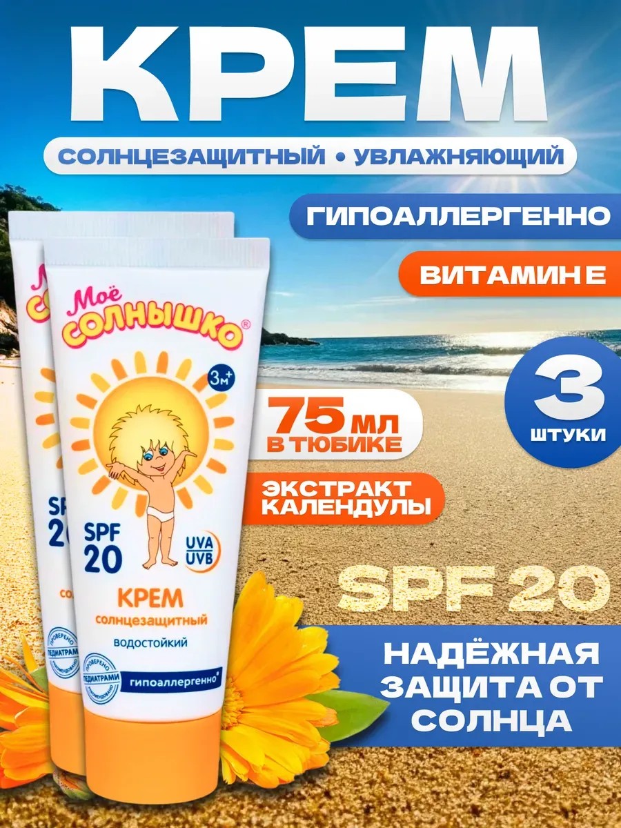 Мое солнышко Солнцезащитный детский крем водостойкий SPF 20 , 3х75 мл