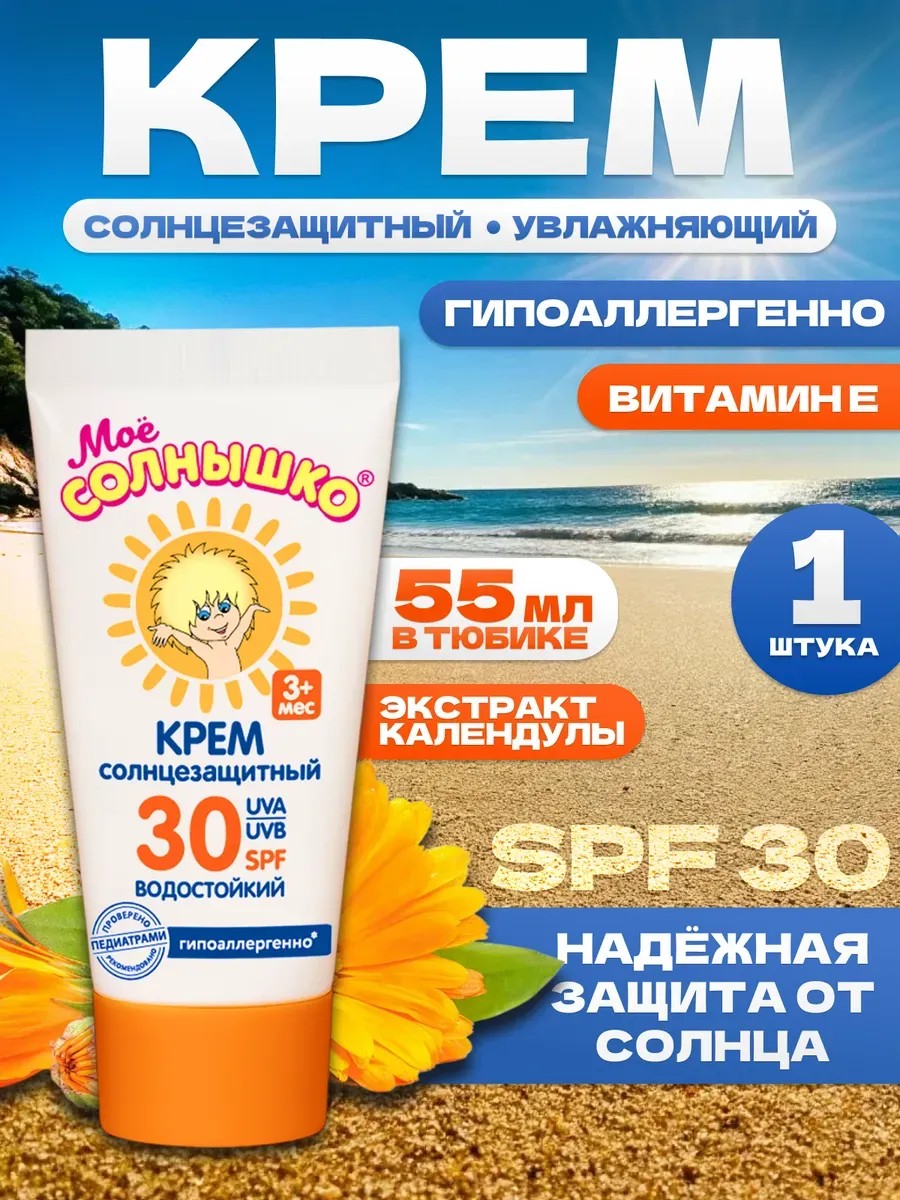 Мое солнышко Солнцезащитный детский крем водостойкий SPF 30 , 55 мл