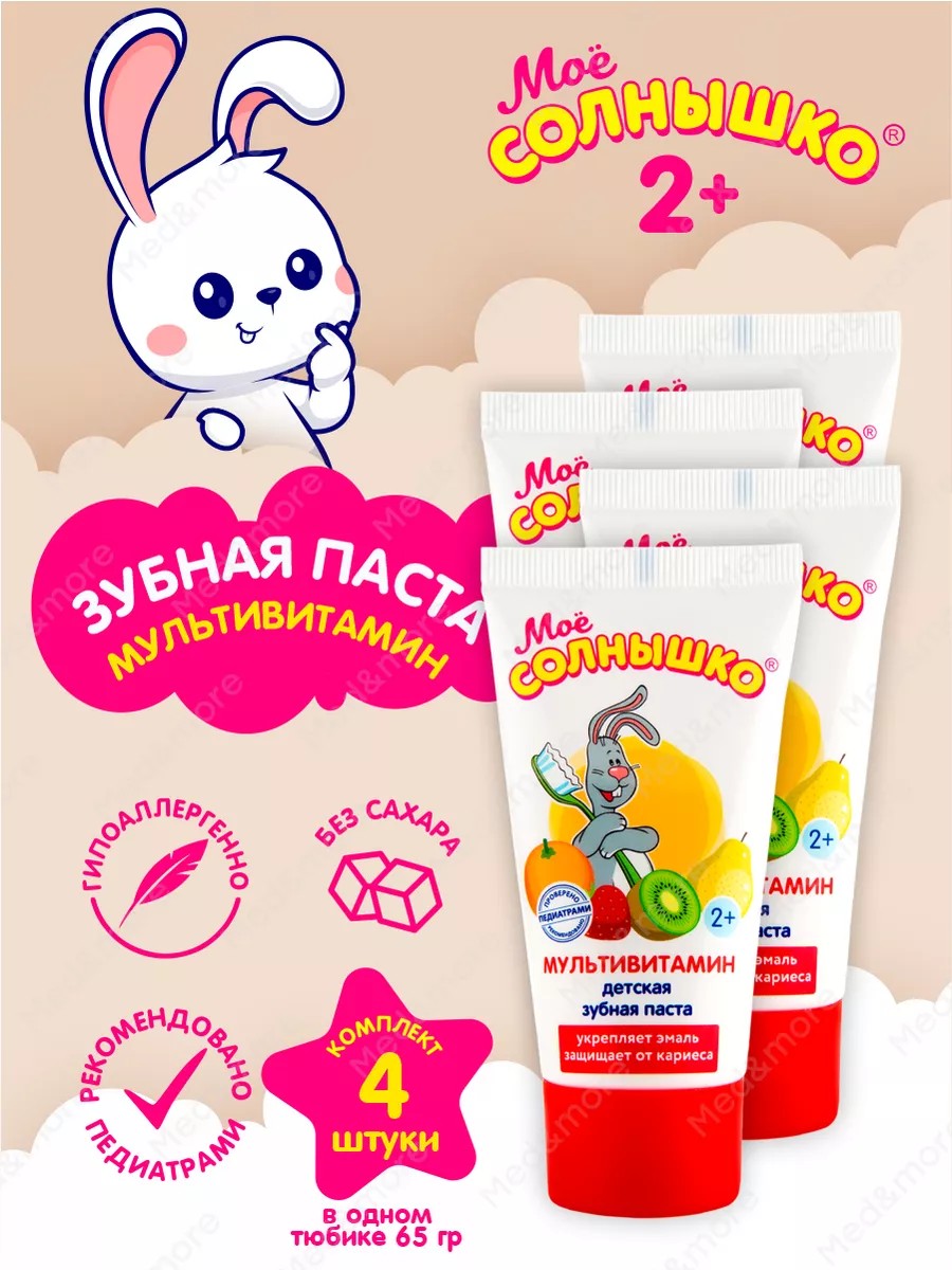 | Комплектация | Зубная паста детская мультивитамин Моё Солнышко 65 гр х 4 шт. |