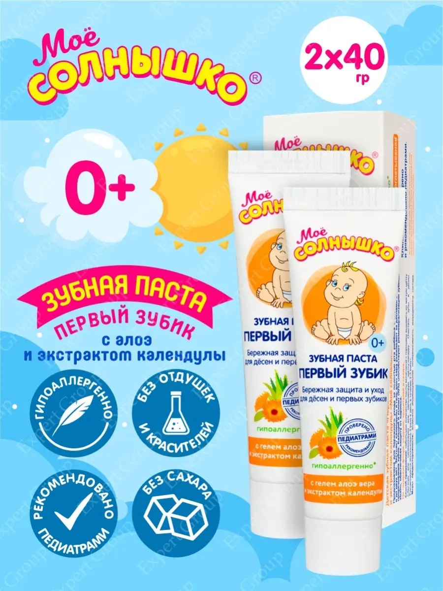Зубная паста Мое Солнышко Первый зубик с алоэ и экстрактом календулы 40 гр, 2 шт —это отличное средство для ухода за первыми зубками вашего малыша с самого их появления. Зубная паста детская разработана с учетом всех особенностей детского организма и обеспечивает надлежащий уход за дёснами, особенно в период прорезывания зубов, когда десны могут быть чувствительными и нуждаются в особом внимании.