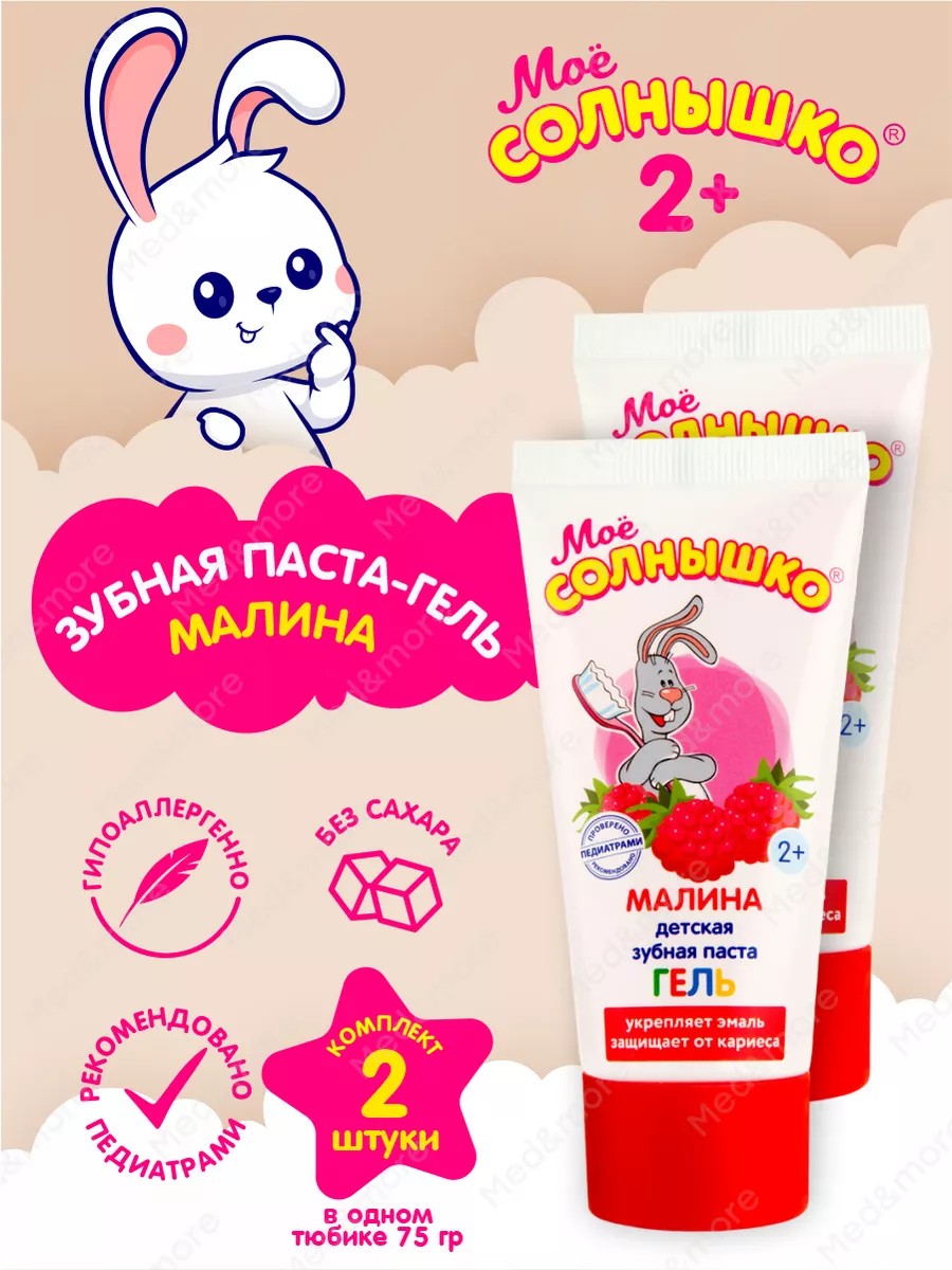 Моё солнышко Зубная паста-гель детская малина 75 гр, 2 шт