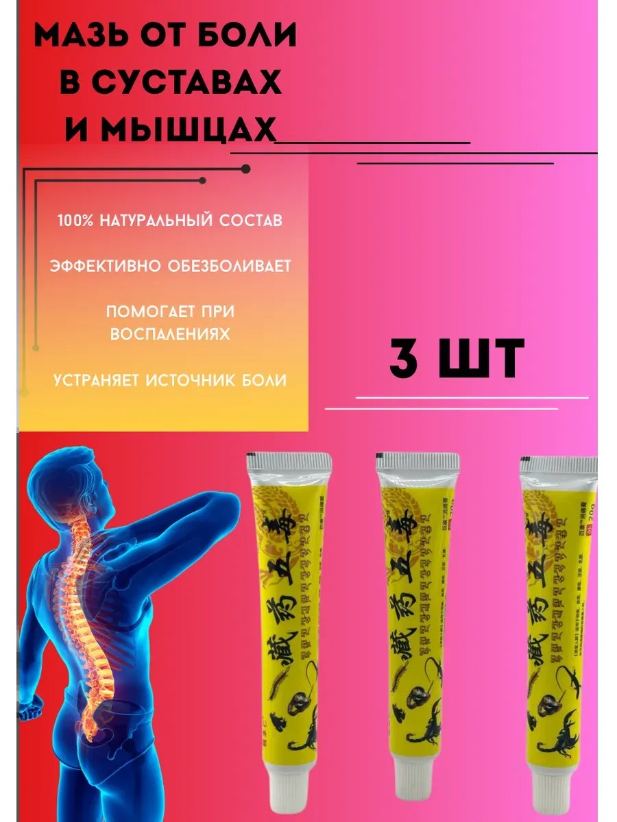 | Комплектация | Набор обезболивающего мазя от суставов, спины и мышц 3шт |