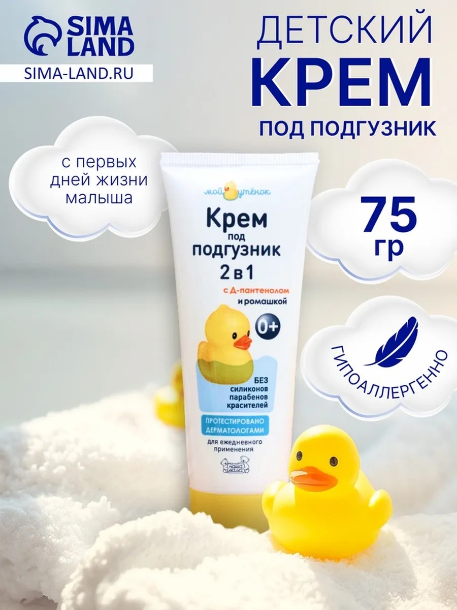 Baby diaper cream "My Duckling" is ideal for caring for your baby's sensitive skin. The 75g volume ensures long-lasting use. The cream creates a protective barrier, preventing diaper rash and irritation in the diaper area, keeping the skin dry and protected from moisture and friction. The formula includes natural extracts and oils, providing hydration and nourishment, helping maintain optimal moisture levels and preventing dryness. The cream's pleasant texture is easy to apply, absorbs quickly, and leaves no greasy residue, ensuring a comfortable feeling. The cream has been dermatologically tested and is suitable for daily use, guaranteeing safety for delicate skin. Made in Russia. Reliability and care for your baby's health in every tube.