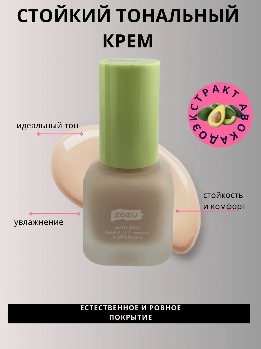 ZOZU Avocado Beautiful Liquid Foundation — это легкое и стойкое тональное средство, которое обеспечит естественное покрытие, надежно маскирует несовершенства и выравнивает тон кожи. Благодаря экстракту авокадо, крем не только придаёт коже свежесть и сияние, но и обеспечивает глубокое увлажнение и питание в течение дня.