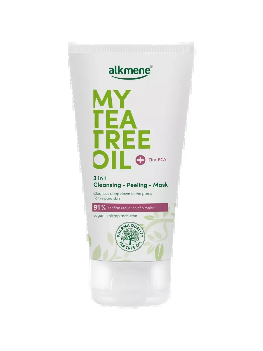 Want perfectly clean and nourished skin? Then the ALKMENE MY TEA TREE OIL 3-in-1 Purifying Peeling Mask from Germany is just what you need! This unique formula combines three essential functions: cleansing, exfoliation, and masking, to provide your skin with comprehensive care. With the highest quality tea tree oil and zinc PCA, this peeling mask combats skin problems in three ways. It gently cleanses the skin, removing all types of impurities, excess sebum, and makeup. Exfoliating particles help remove dead skin cells and tighten pores, leaving skin smoother and more even-toned. The mask regulates sebum production, mattifies the skin, and reduces shine, leaving the face fresh and radiant. This product is ideal for those who want clean and nourished skin right down to the pores. Its skin compatibility is dermatologically confirmed, and the formula is non-comedogenic, making it safe even for sensitive skin. Apply the peeling mask once a day to damp skin, massage in, and rinse thoroughly. For maximum effect, use as a mask 2-3 times a week, leaving it on for 3-5 minutes, then rinse thoroughly with water. Avoid applying to the eye and lip area. Don't put off caring for your skin - try ALKMENE MY TEA TREE OIL 3-in-1 Purifying Peeling Mask for Face today and feel the difference from the first use. German quality and natural ingredients will provide your skin with the perfect care it deserves. You can also find other products in this series for skin and hair care in our store.