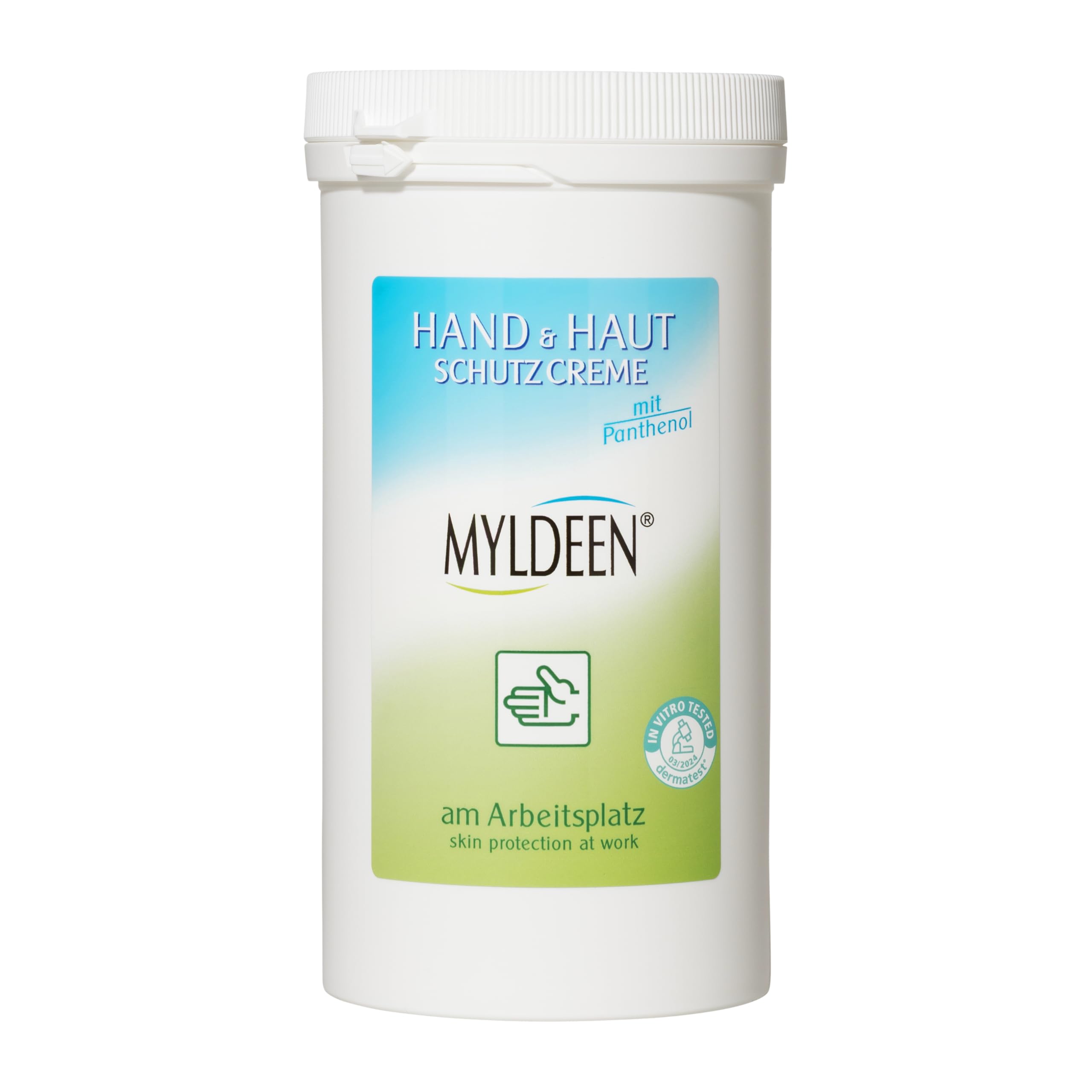 The ideal skin protection for your hands. MYLDEEN Skin Protection Cream has been specially formulated for skin under constant stress. It protects and nourishes the skin without affecting its natural ability to breathe. Experience the unique effect of our clinically tested hand protection cream. INGREDIENTS Ingredients: Aqua (Water), Propylene Glycol, Cetearyl Alcohol, PEG-8 Ethylhexyl Stearate, Cyclopentasiloxane, Stearic Acid, Palmitic Acid, Panthenol, Dimethiconol, PEG-75 Lanolin, Sodium Hydroxide, Parfum (Fragrance), Methylparaben, Propylparaben, Linalool.MYLDEEN Hautschutzcreme Handcreme, Handpflege Creme Nachfülldose 500 ml Pflege auf der Arbeit, Arbeitsschutz Pflegt und schützt trockene und rissige Händen, nicht fettendDESCRIPTION DU PRODUIT DESCRIPTION DU PRODUIT La protection de la peau idéale pour vos mains. La crème de protection de la peau MYLDEEN a été spécialement conçue pour les peaux fortement sollicitées, elle protège et nourrit la peau sans affecter la capacité respiratoire naturelle de la peau. Laissez-vous convaincre par l'effet unique de notre crème de protection pour les mains testée cliniquement. INGRÉDIENTS Ingrédients : Aqua (eau), propylène glycol, alcool cétéaryle, PEG-8, éthylhexyl stéarate, cyclopentasiloxane, acide stéarique, acide palmitique, panthénol, diméthiconol, PEG-75 lanoline, hydroxyde de sodium, parfum, méthylparaben, propylparaben, linalool.Effet : éprouvé depuis plus de 20 ans. Domaines d'application : protection de la peau pour l'industrie, l'artisanat et la maison. Régénération - Hydrate et soutient la régénération cellulaire. Entretien : prend soin des mains et de la peau, même après la désinfection. Protection : protège les mains pendant le travail, crème de protection du travail.