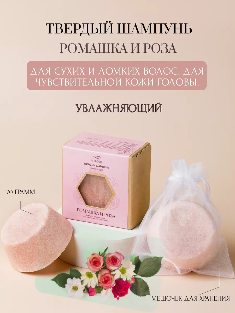 Наш натуральный твердый шампунь женский "Ромашка и Роза" - это новое слово в косметологии! Благодаря уникальному составу на основе натуральных компонентов, наш лечебный шампунь поможет вам избавиться от проблем с сухими, тонкими и ломкими волосами, а также защитит чувствительную кожу головы. После применения волосы легко расчесываются, дольше остаются чистыми, препятствует выпадению, глубоко очищает и питает, находка для ваших корней волос.
