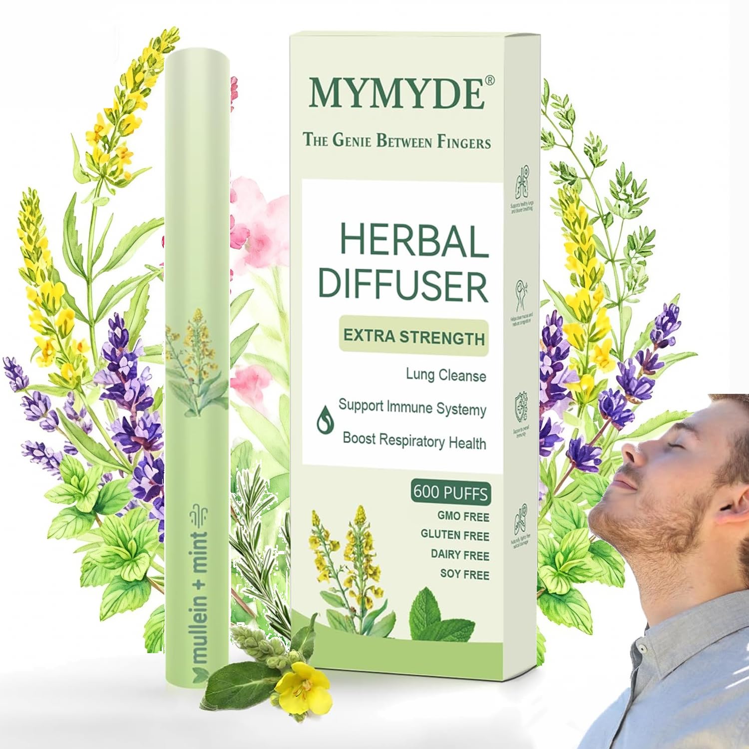 MYMYDE Herbal Mullein Diffuser Pen -Thyme & Mint Extract-Designed for Lung Detoxification and Oral Freshness-Soothing Relaxation Sticks - Quit Smoking -Your Choice for Health and Aromatherapy