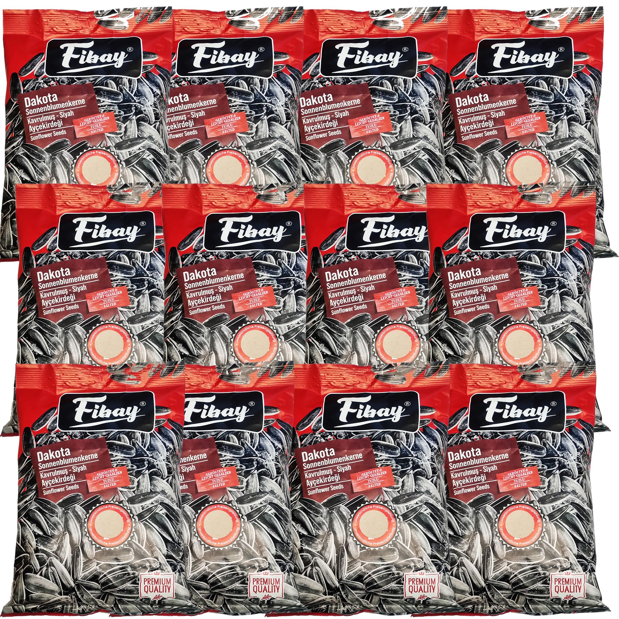 Fibay - Graines de tournesol Dakota - Grillées et légèrement salées - Qualité supérieure (12 x 150 g) 12x150g