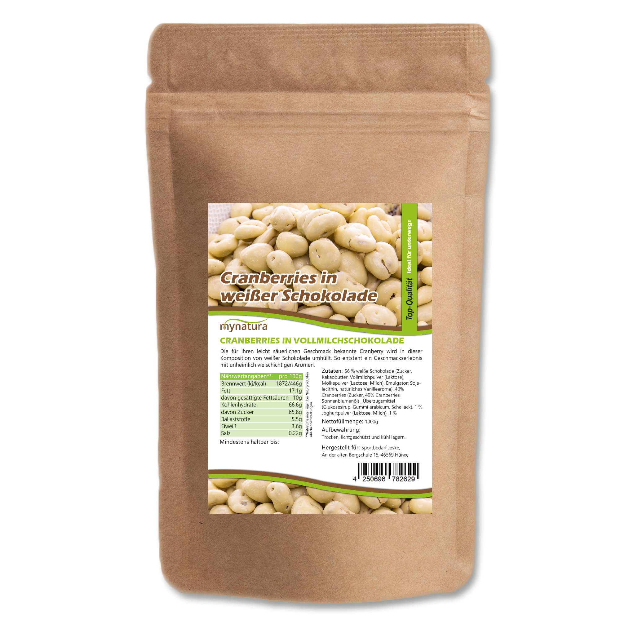 mynatura Mynatura Cranberries Dried in White Chocolate Cranberry Wrapped in Chocolate Cereal Snack Cranberries Sweet Bag (3 x 1000 g)
